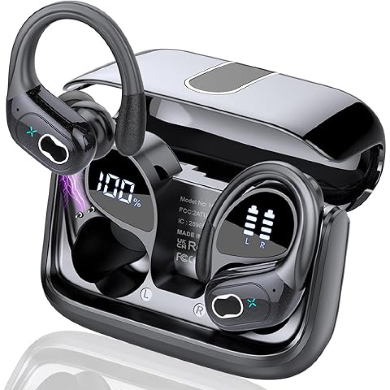 Secure Over-Ear Fit for Active Movement: Engineered for performance, the flexible earhooks keep your earbuds securely in place through every sprint, lift, or outdoor run. Lightweight, sweat-resistant materials ensure long-lasting comfort even during intense workouts. Designed for athletes and commuters alike, these wireless earbuds move when you do.